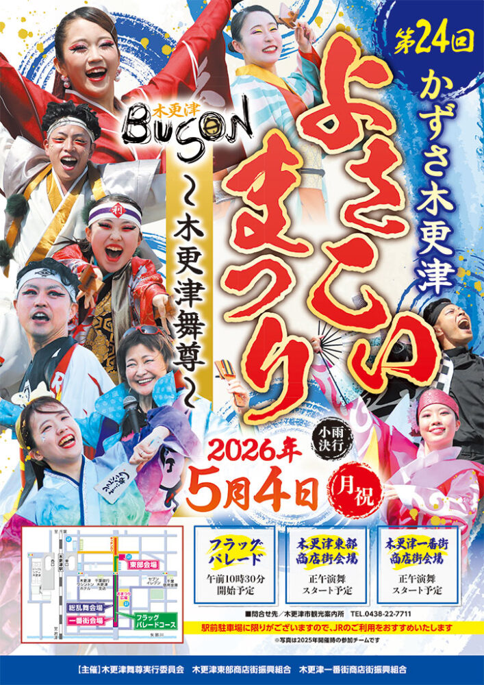 第24回かずさ木更津よさこいまつり~木更津舞尊~が5月4日(月・祝)に木更津駅中心市街地にて開催されます。